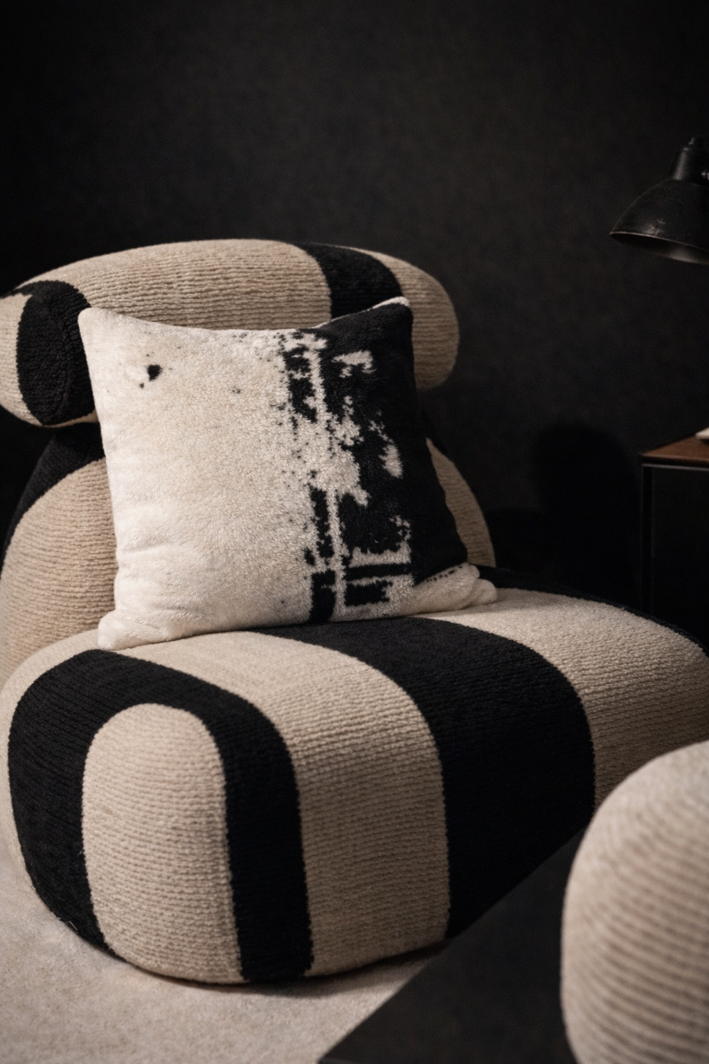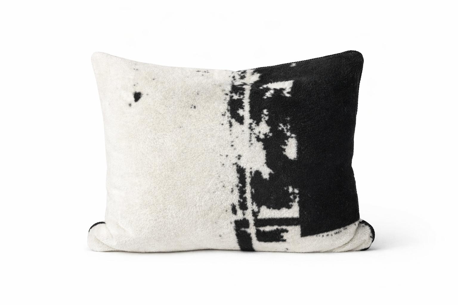 Poduszka Blanco to stylowy akcent, który doskonale odnajdzie się zarówno w nowoczesnych, jak i klasycznych aranżacjach. Wzór poduszki jest dwustronny. Jedna ze stron zawiera wizualizację obrazu z kolekcji Hanna Dymarczyk, natomiast druga – haft z logo umieszczony centralnie na jasnej stronie poduszki. Całość została wykończona czarnym sznurem, który dodaje poduszce wyrazistości.